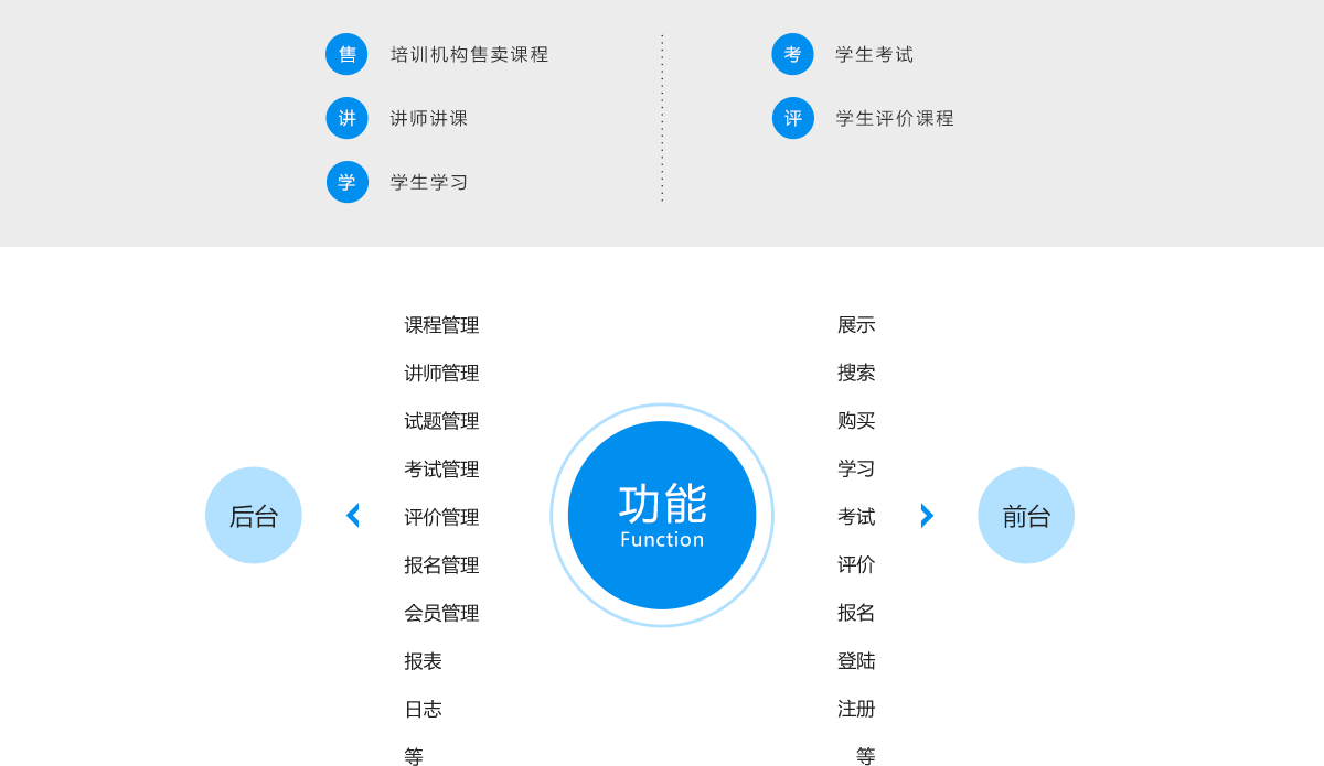 这是一个将传统培训行业中课程的售、讲、学、考、评通过互联网方式来实现的网站,通过这个网站,平台、讲师、学生可以突破空间、时间、介质的局限,达到比传统培训更好的效果。