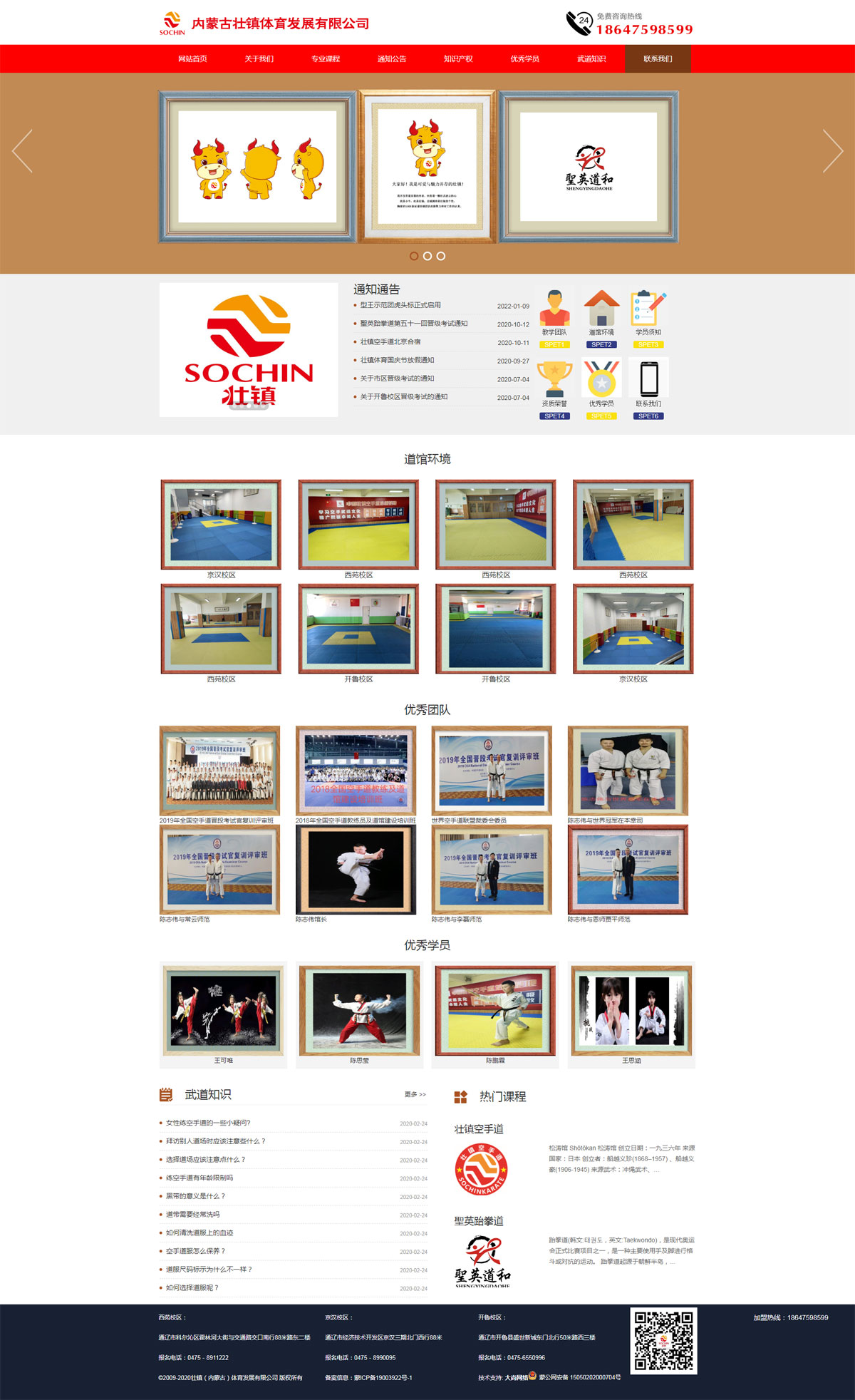 壮镇(内蒙古)体育发展有限公司,公司成立于2009年9月,壮镇释义:壮志凌云,岳镇渊渟。目前壮镇体育旗下有两大武道产业,分别为聖英跆拳道、壮镇空手道。公司自成立以来,以强身健体、提升素质、锤炼自我、成就脊梁为使命,以推广武道健身为己任,以体育教育发展为路线,以提升学生综合素质为中心。在提高学生专业技能的同时,更重视学生 礼仪、 品德、意志的培养。 让每一位学生更阳光、更自信,更快乐的成长。我们要帮助更多的孩子养成运动的好习惯, 共铸强健的体魄, 孕育武道的灵魂。 给他们面对困境的信念和意志力。最好的教育方式,莫过于言传身教,公司的每一 名老师,时刻要求自己的一言一行, 秉承师者之心,用行动塑造榜样。