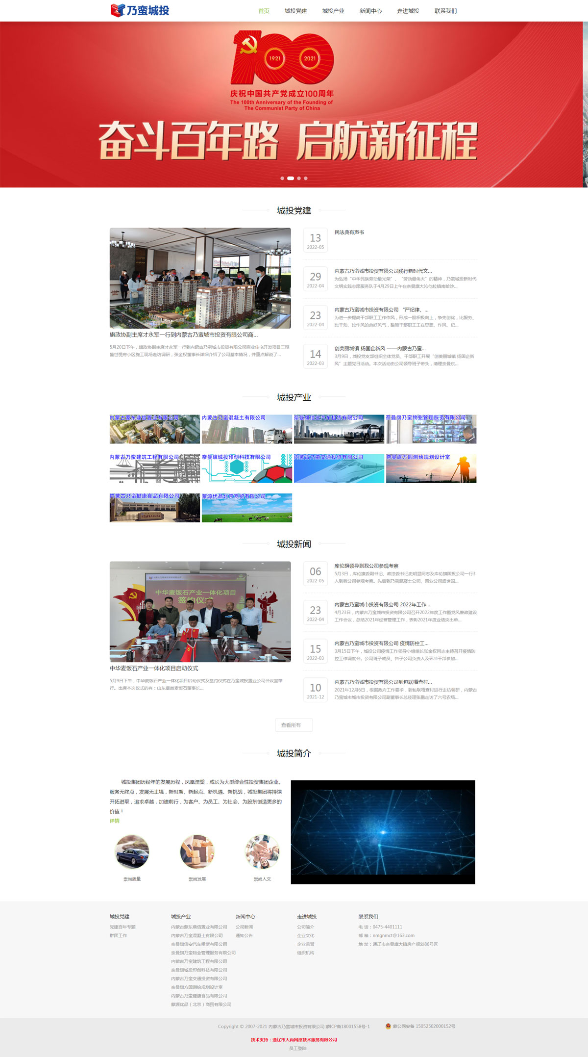 内蒙古乃蛮城市投资有限公司是奈曼旗人民政府直属国有企业。成立于2016年6月,由奈曼旗国有资产监督管理委员会出资,注册资本金1.5亿元。公司下辖11家全资子公司,分别是内蒙古蒙东鼎信置业有限公司、内蒙古乃蛮混凝土有限公司、内蒙古乃蛮建设工程有限公司、内蒙古乃蛮矿业开发有限公司、内蒙古乃蛮交通投资有限公司、奈曼旗信安汽车租赁有限公司、奈曼旗方圆测绘规划设计室、奈曼旗乃蛮物业管理服务有限公司、蒙源优品(北京)商贸有限公司、内蒙古乃蛮健康食品有限公司、奈曼旗城投印创科技有限公司,2家参股公司,奈曼旗通用机场有限责任公司、通辽市通奈新能源有限公司。现有员工121人,其中集团总部20人,其中高层管理人员6人,分别是董事长一人、副董事长总经理一人、副总经理三人、总会计师一人。内设5个部室分别是行政部、党群文化服务部、财务部、市场运营部、安全环保部。公司主营业务涵盖房地产开发;混凝土生产、销售;建设工程、市政工程;汽车租赁服务;物业管理服务;商贸流通;规划测绘;广告印刷等。公司主要负责城市建设项目、建设承包、城市维护、道路交通项目投资、市政基础设施建设与运营等。
