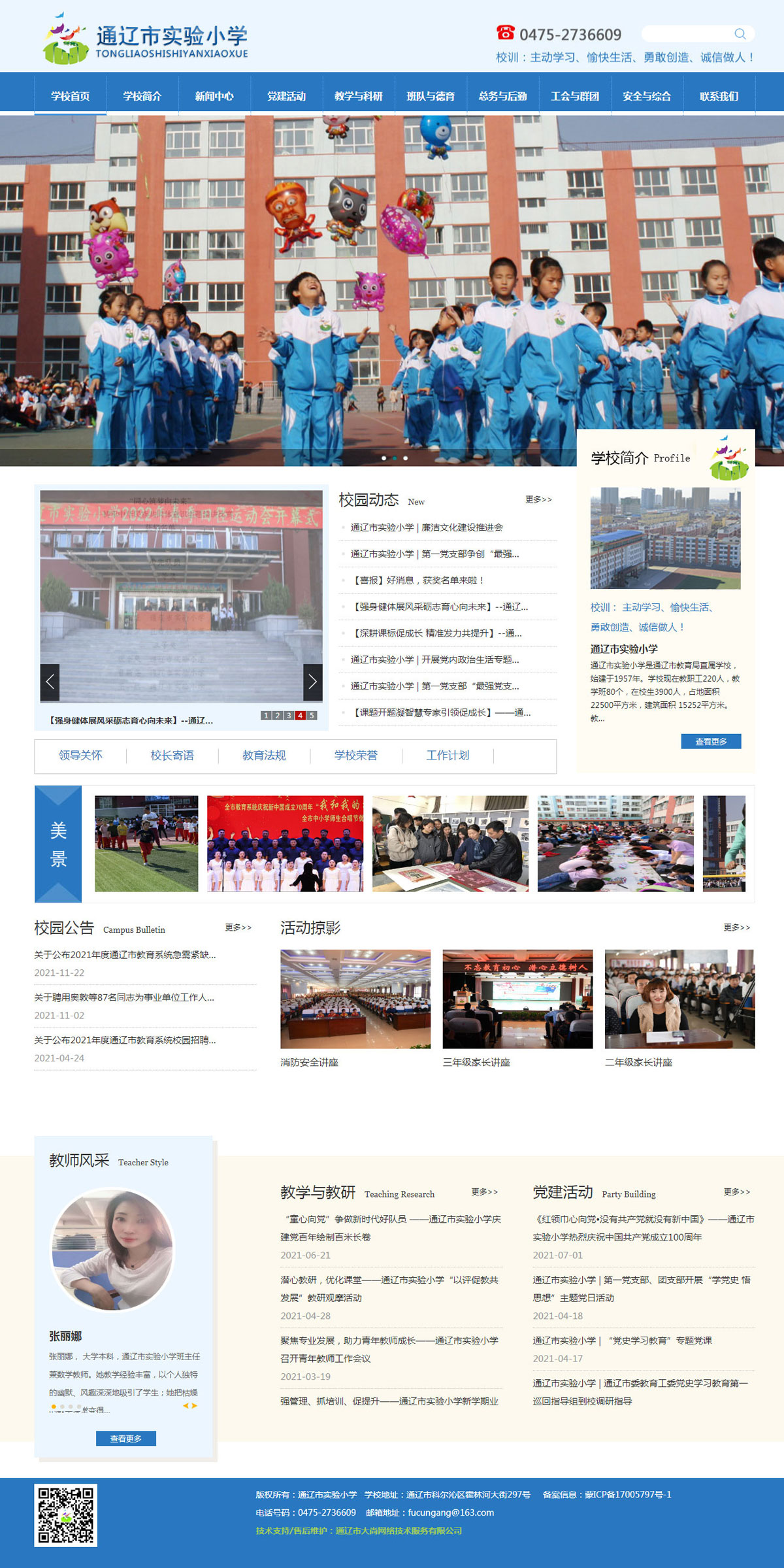 通辽市实验小学是通辽市教育局直属学校,始建于1957年。学校现在教职工220人,教学班80个,在校生3900人,占地面积22500平方米,建筑面积 15252平方米。教师队伍中具有大专以上学历的195人。具有研究生硕士学位毕业的9人,小学特级教师4人,高级教师57人,小学高级教师70人,小学一级教师87人。