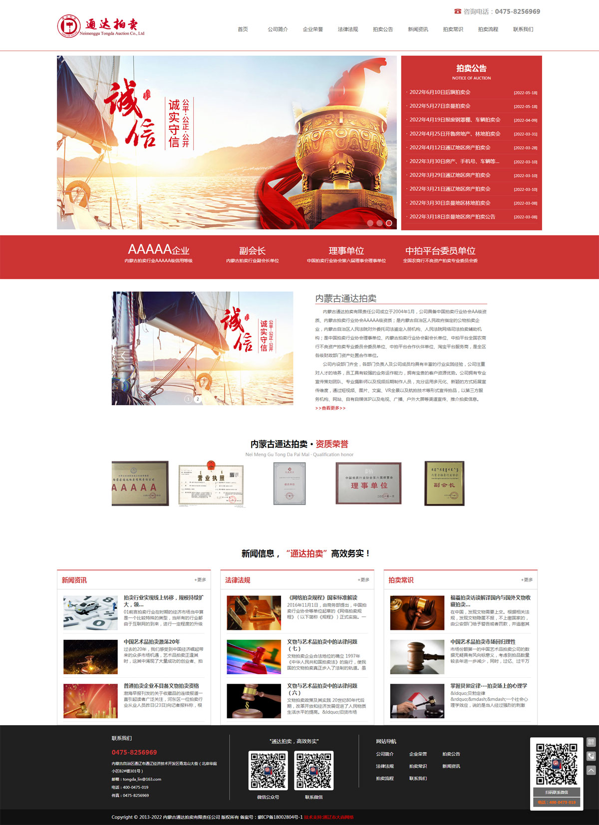 内蒙古通达拍卖有限责任公司成立于2004年1月,公司具备中国拍卖行业协会AA级资质、内蒙古拍卖行业协会AAAAA级资质;是内蒙古自治区人民政府指定的公物拍卖企业,内蒙古自治区人民法院对外委托司法鉴定入册机构、人民法院网络司法拍卖辅助机构;是中国拍卖行业协会理事单位、内蒙古拍卖行业协会副会长单位、中拍平台全国农商行不良资产拍卖专业委员会委员单位、中拍平台合作伙伴单位、淘宝平台服务商,是全区各级财政部门资产处置合作单位。